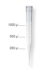 該規(guī)格吸頭適用于細口容器的移液或反復移液操作。長82 mm,外形細長。吸頭于 250 μl、500 μl及1000 μl處有刻度標記,便于快速檢查體積。預裝移液器吸頭無色透 明,放置于一個橙色的吸頭托架上。
