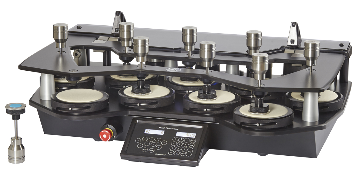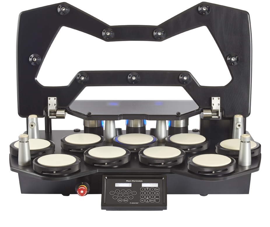 馬丁代爾儀廣泛應(yīng)用于測試耐磨擦和起毛球試驗。James Heal開發(fā)了三個型號馬丁代爾儀,有9個測試頭、 5 個測試頭和2個測試頭三種選擇